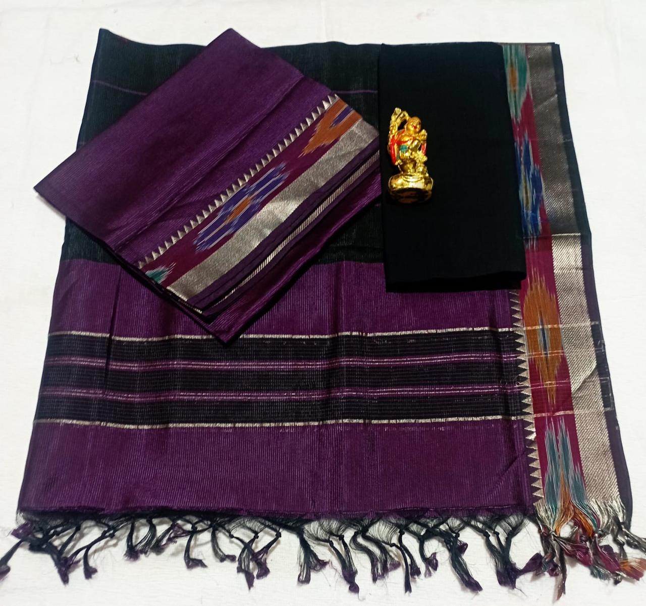 Deep Purple & Black Border Mangalagiri Pattu Pure Handloom Saree