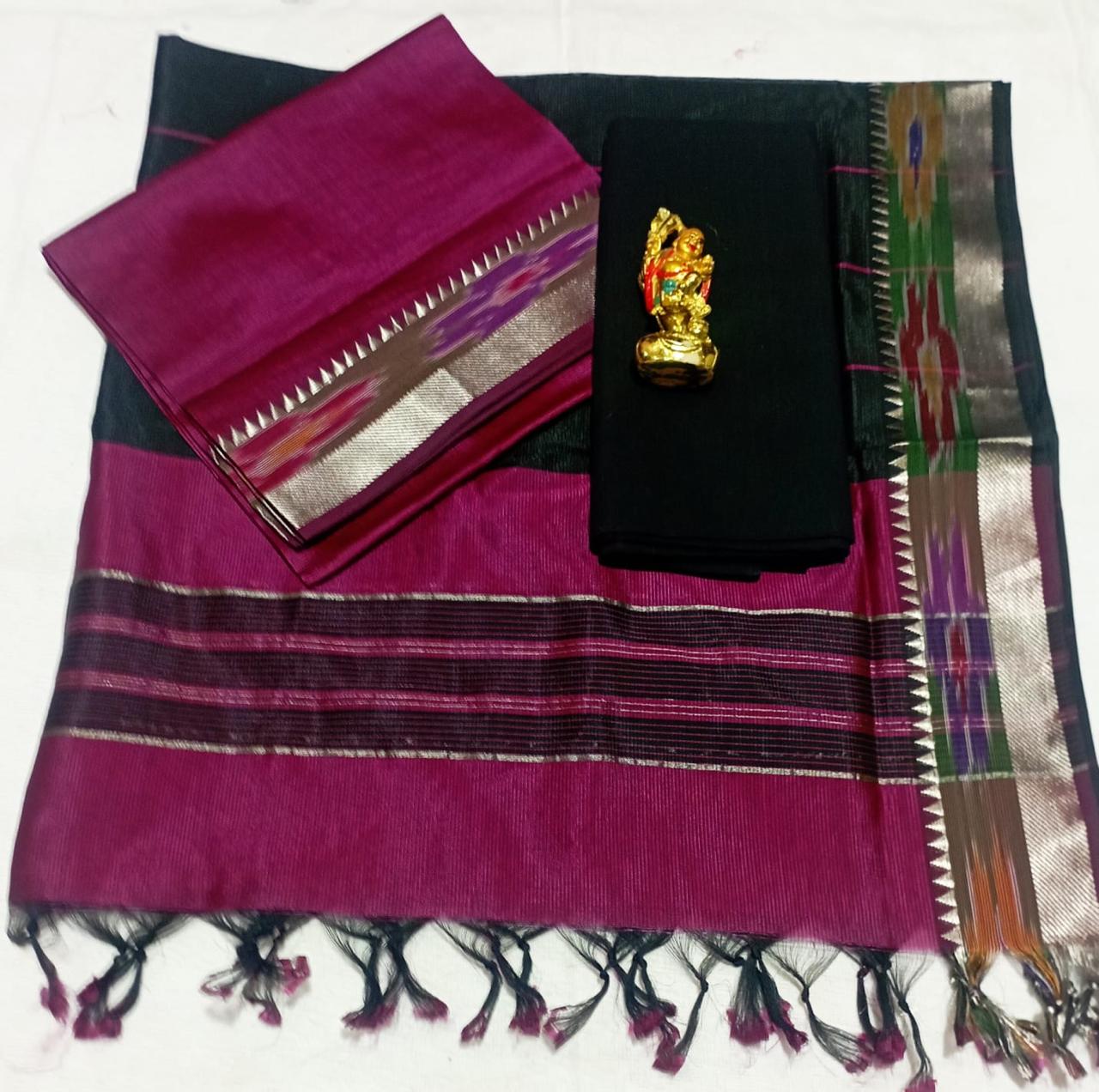 Pure handwoven Mangalagiri Pattu saree in a rich rani pink shade with a subtle silver border, reflecting timeless South Indian handloom elegance.